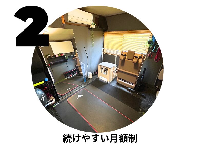 自宅併設、内装やマシン設置までおこなった手作りのジムだから実現した低価格でありながらも、質の高いトレーニングが受けられる環境をStudio Zero Gravityは提供します!